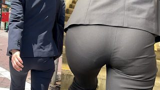 作品紹介 美*パンティーライン通信*ニットタイスカワンピ階段のセクシーお姉さん粘着追尾編
